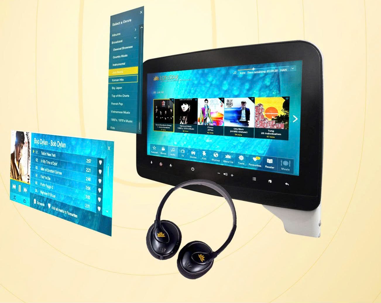 Podcast được cài đặt trong mục Audio/ Âm nhạc trên màn hình giải trí cá nhân phía trước mỗi ghế ngồi của hành khách trên các tàu bay thân rộng Boeing B787 và Airbus A350.